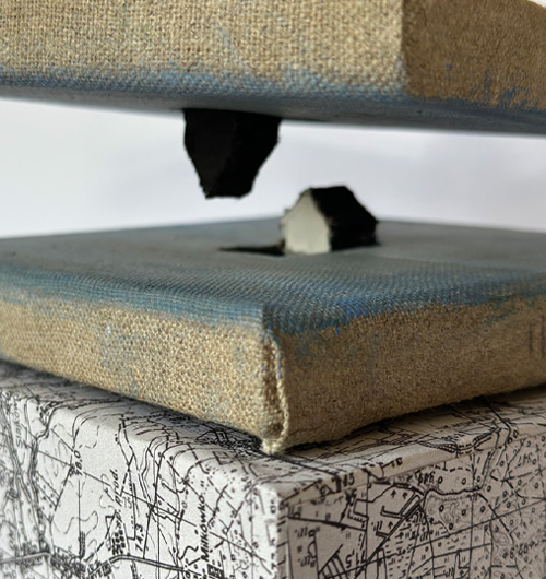 It refers also to the 2004 work ‘Realistic Landscape Painting in Second Dimension’, also inspired by cartography (the black figures are views of houses from above).