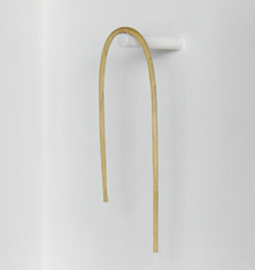 栃の木を細く彫り出して紐が自然体の状態を作りました。