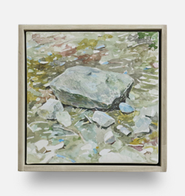 | 私は描いては消すという行為から生まれる偶然性をなぞることによって、キャンバス上で風景にもう一度出会いたいと思う。絵が仕上がってくるときに、描くことと対象に対して美しいと感じる感覚を一致させることができると考えています。 |