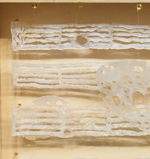 [作家コメント] 音楽は動いているから、整然とした線や丸だけが楽譜ではないのかも知れません。 [自己紹介] 身の回りに当たり前に存在している自然現象と自分との間に素材を置いて考え、作品制作をしています。