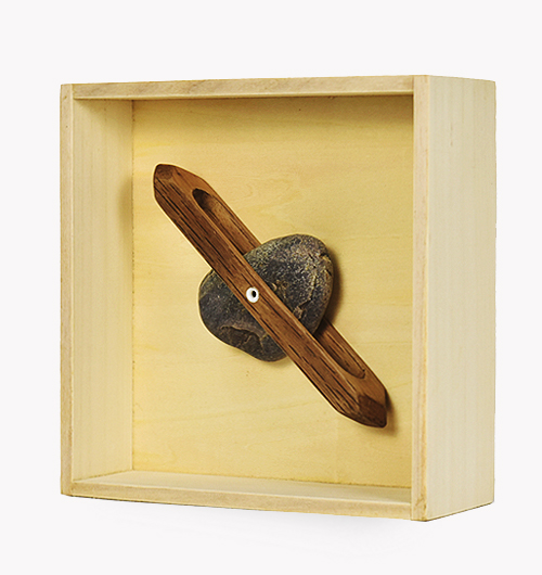 作家コメント 織物の織り機に張られた縦糸に横糸を通す道具が舟形シャトルです。夢の始まりを石で表しています。 自己紹介 近年、石に漆を塗った漆石を使った作品に取り組んでいます。今回は、あえて石に漆は塗らず光り耀く前の原石として登場させました。