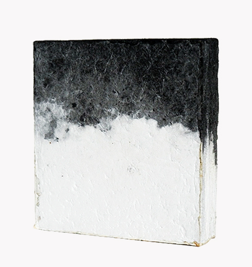 中国の文人趣味や書斎で使われる筆・墨・紙・硯は、文房四宝と言われ、水墨画の基本要素ともされています。本作は、「文房四宝」の内の墨と紙を取り上げ、伝統的水墨の表現を墨による単純な痕跡に還元され、宣紙と墨の素材感を最大限に引き出し、水墨画を再構築するものです。