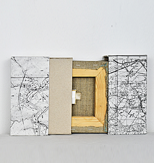 It refers also to the 2004 work ‘Realistic Landscape Painting in Second Dimension’, also inspired by cartography (the black figures are views of houses from above).