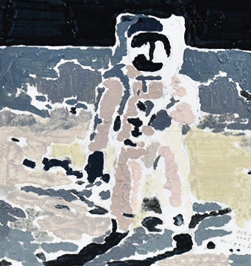 作家コメント 「今日、無数のイメージが様々なメディアを通じて流通する。その中で繰り返し反復されるような"歴史的イメージ"も存在する。そうしたイメージはおそらく国家や大衆の共同幻想を形作ってもいるのでしょう。 自己紹介 島根県出雲市出身の画家。現在、同地で制作活動を行う。 主に雑誌やインターネットからピックアップしたイメージを逆さまに描く手法で絵画を制作している。